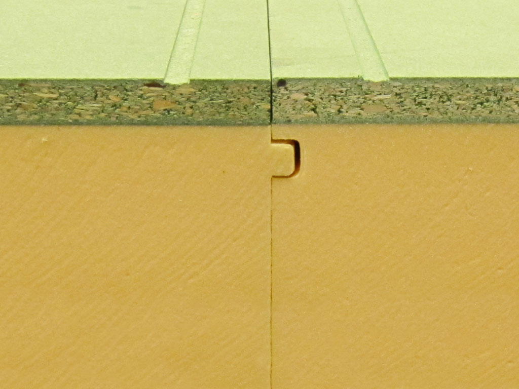 Inyectado en línea continua con poliuretano de alta densidad (40kg/m2). Revestimiento sintético en PVC flexibilizado.